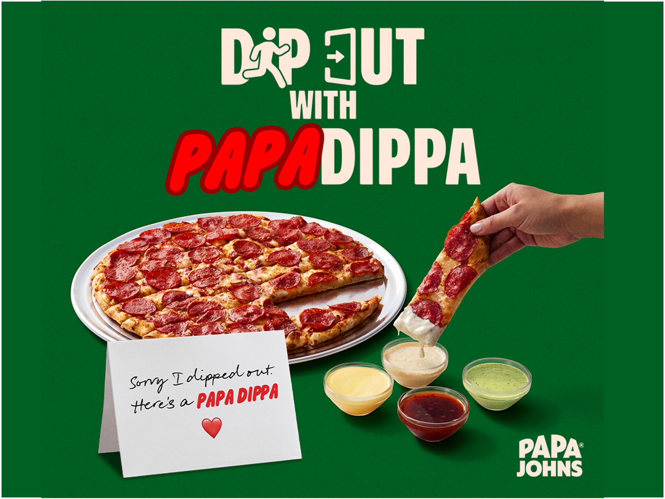 Papa Johns is flipping the script on the quiet exit. In partnership with Uber Eats, the brand is launching “Dip Out with the Papa Dippa,” a guilt-free way to bail and still deliver the pizza love. Whether you’re ghosting a football watch party or sneaking out of a date, Papa Johns lets you Dip Out with no regrets by sending a hot, shareable Papa Dippa as a delicious apology in your place.